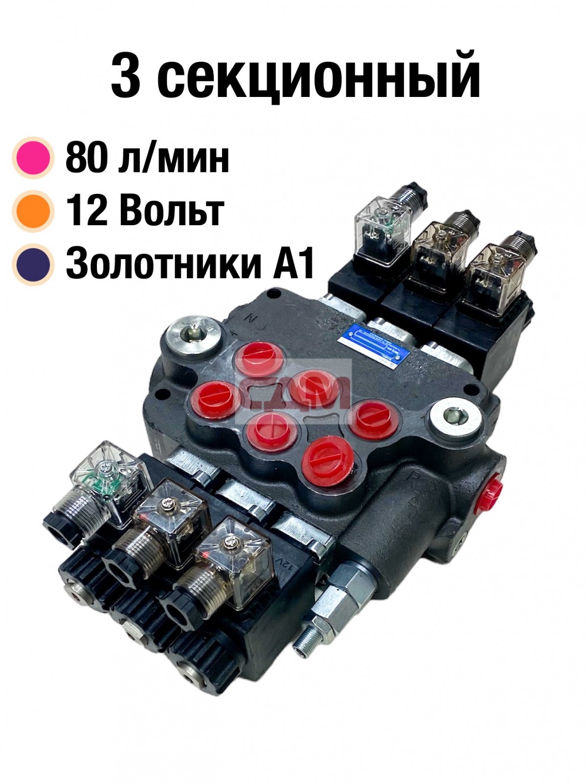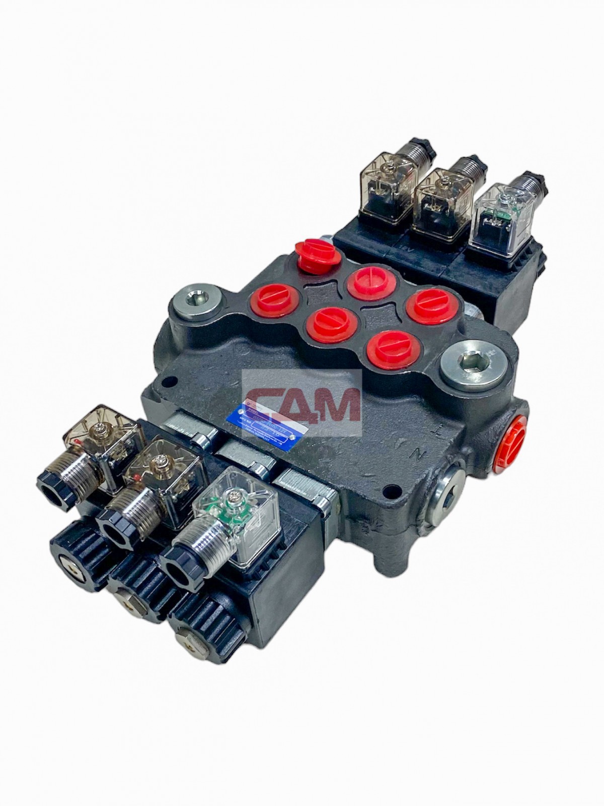 Гидрораспределитель трехсекционный 3Z80 А1A1A1 ES3 12 VDC G (80 л/мин) для мобильной техники и станочных механизмов