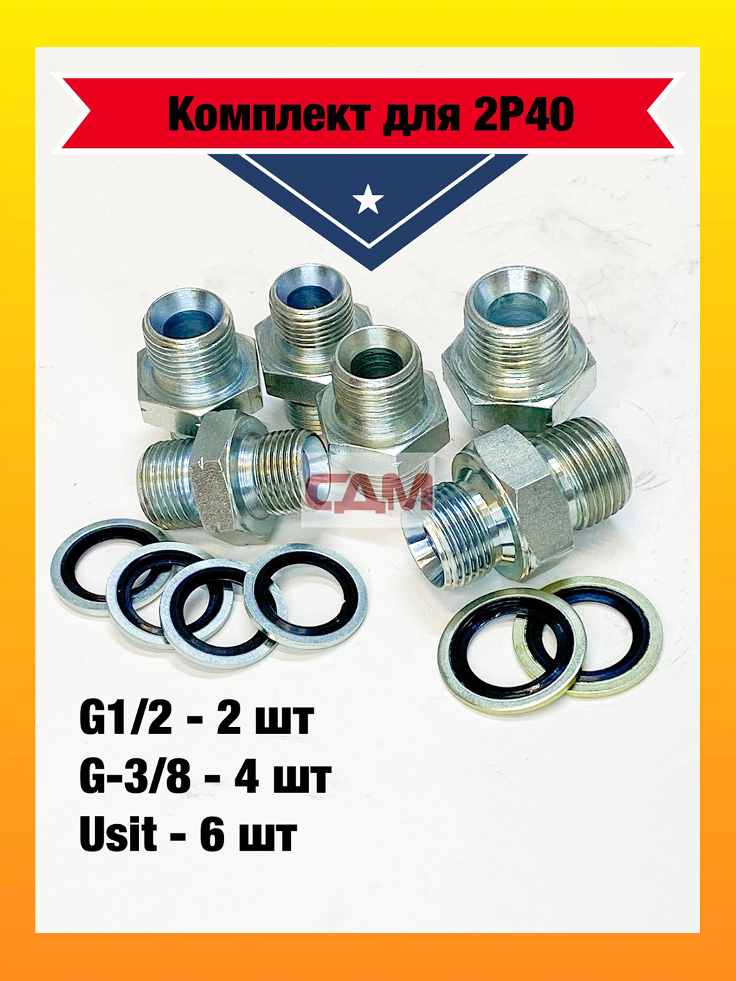 Комплект присоединительный гидрораспределителя 2Р40 А1А1 (G1/2-М20х1.5, G3/8-М18х1.5, USIT 6шт)