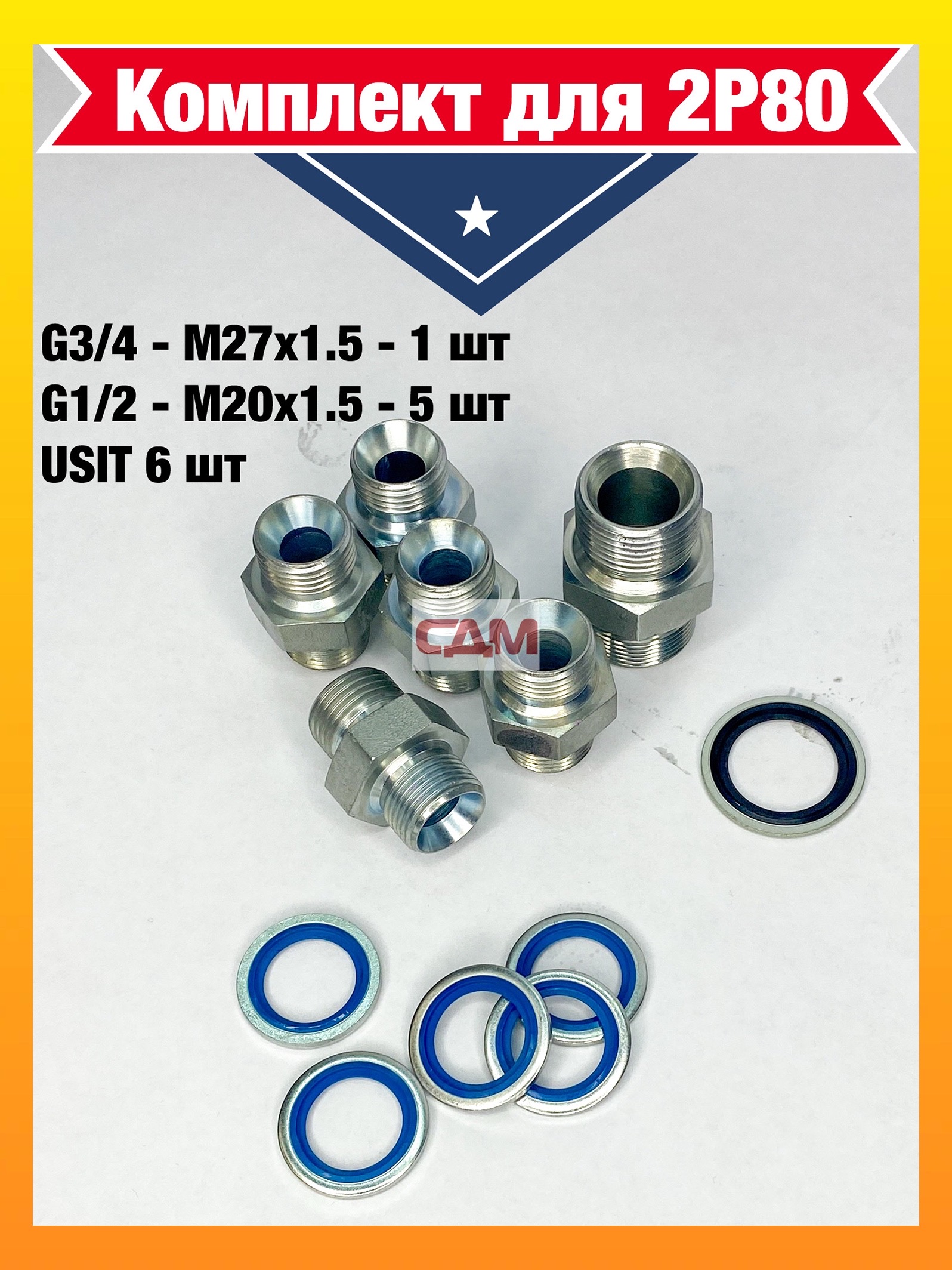 Комплект присоединительный гидрораспределителя 2Р80 (G3/4-М27х1.5, G1/2-М20х1.5, USIT)