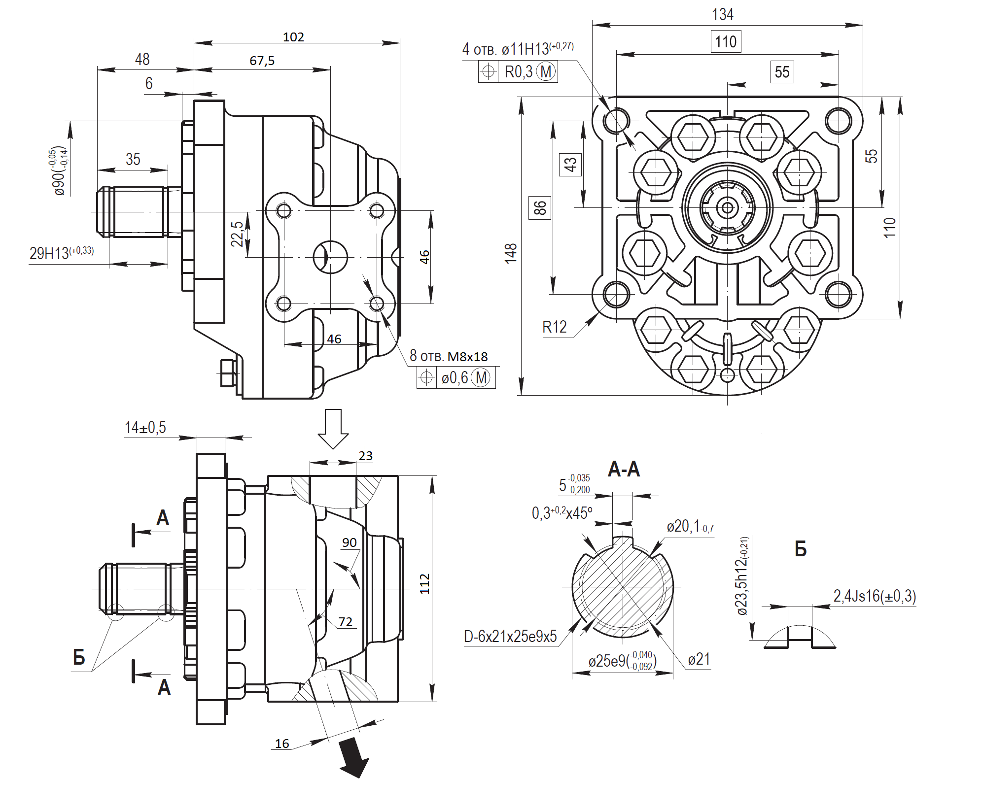 Корпуса насосов изготавливаются из высокопрочного чугуна, что позволяет выдерживать большие гидравлические нагрузки и обеспечить высокую надежность и долговечность работы изделия. Металлофторопластовые подшипники обеспечивают повышенный ресурс работы насоса. Применяются на бульдозерах, автогрейдерах, карьерных самосвалах, тракторах, комбайнах и другой мобильной технике.