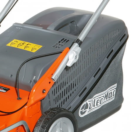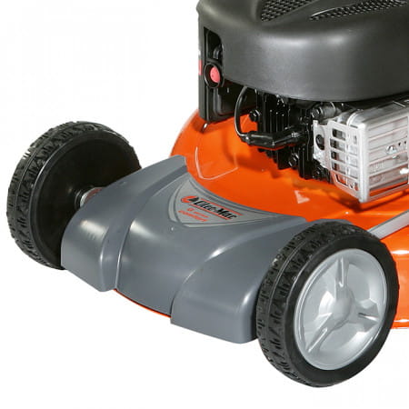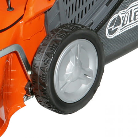 Высота стрижки очень просто и быстро регулируется одним рычагом, сразу по всем колесам. Мульчирующий нож измельчает траву на мельчайшие части, уменьшая тем самым ее объем в травосборнике и увеличивая интервалы между опустошениями бункера. Ширина кошения 51 см.