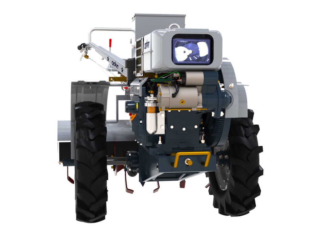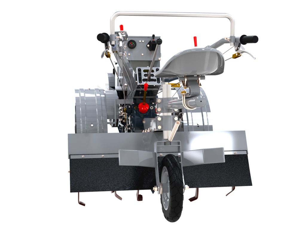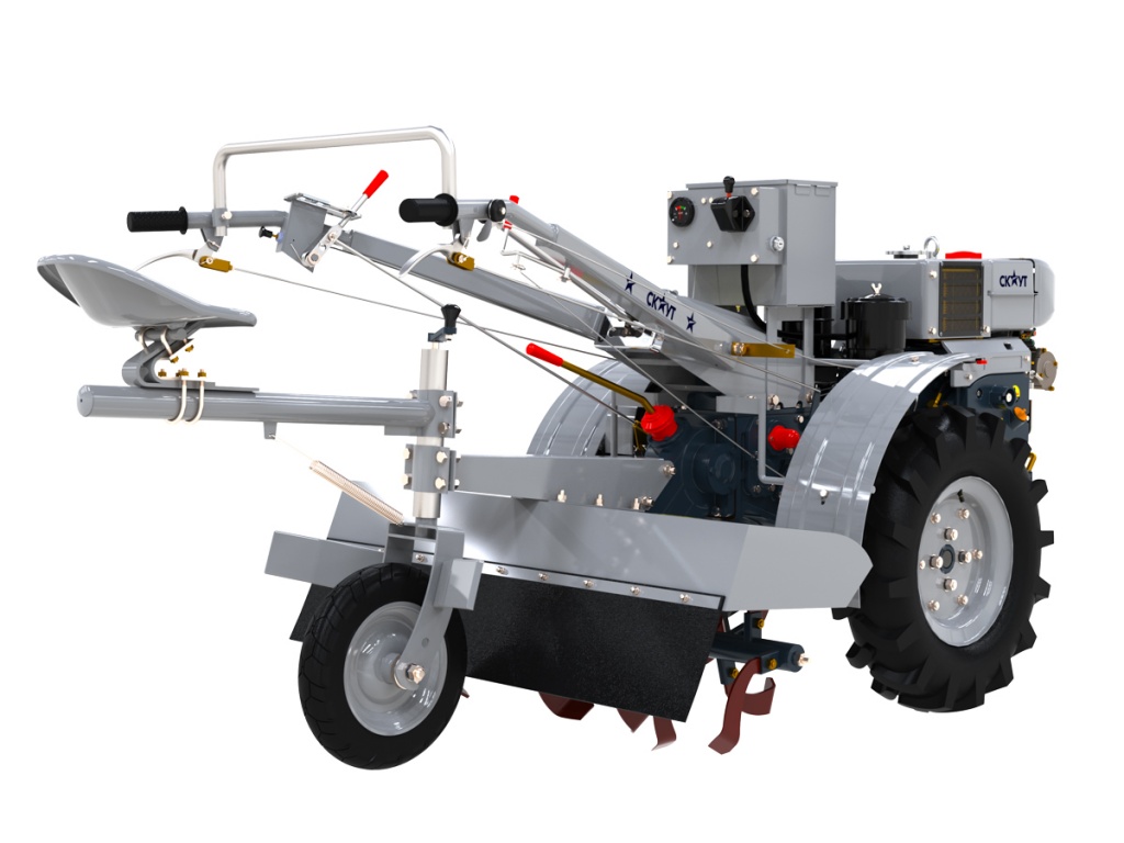 Запуск двигателя происходит при помощи электростартера. Тяговые характеристики двигателя позволяют выполнять земельные работы, работать с прицепом массой до 1000 кг, а также функционировать в течение всего рабочего дня без перерывов.