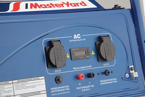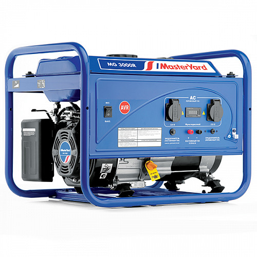 Бензогенератор MasterYard MG 3000R мощностью 3 кВт - компактный переносной источник питания для любых бытовых нужд: дома, дачи, выезда на природу. Автоматическая система регулировки напряжения дает возможность подключать даже чувствительных потребителей. Разъем 12V позволит зарядить автомобильный аккумулятор или подключить другие устройства, которые требуют такого напряжения.