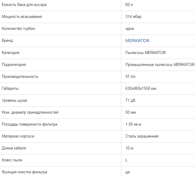 Промышленный пылесос MERKATOR K60 - универсальная, многоцелевая модель. Имеет прочную стальную конструкцию. Коаксиальная индукционная турбина обеспечивает мощное всасывание, непрерывную работу, длительный срок службы и не требует обслуживанияэ