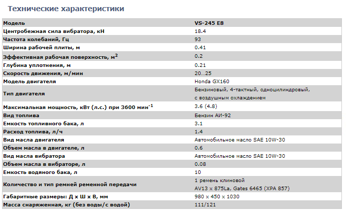 RE_VS245A.pdfДанная модель при тех же габаритах, что и виброплита VS-244, оснащена более мощным двигателем, за счёт чего имеет больший вес и вынуждающую центробежную силу, что позволяет производить эффективное уплотнение на малых площадях, вдоль бордюров, цоколей зданий и в других труднодоступных местах. Допускается применение демпфирующего (виброгасящего)коврика