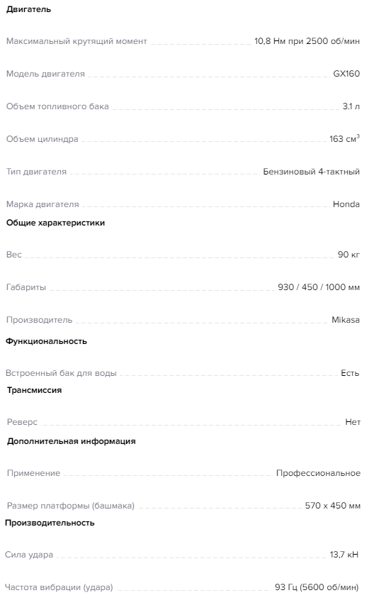 Виброплита Mikasa MVC-F80h - модель с силой удара в 13,7 кН и частотой вибрации 5600 об/мин. Машина оснащается японским двигателем Honda, имеет съемный бак для воды, необходимый для того, чтобы избежать налипания материала, а также уникальной системой виброгашения VAS, благодаря которой работать с плитой очень комфортно.