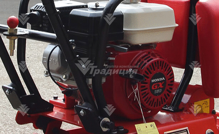 Защитная рама над двигателем, для предотвращения повреждений, имеет специальный упор для поднятия виброплиты краном.