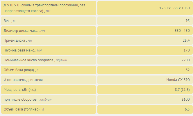 - При максимальном диаметре алмазного диска пропил возможен до 17 см