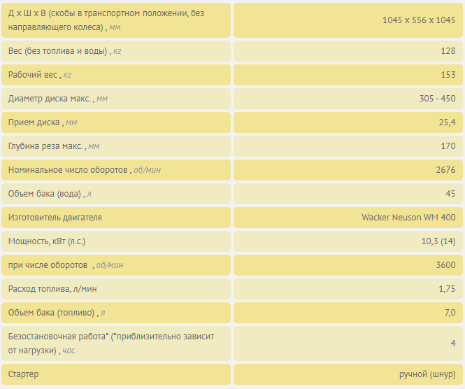 - Наглядное и удобное управление при работе плавная регулировка глубины реза, направляющая с красным роликом для отображения направления реза, механический привод на колеса с блокировкой позволяет производит точную подачу диска